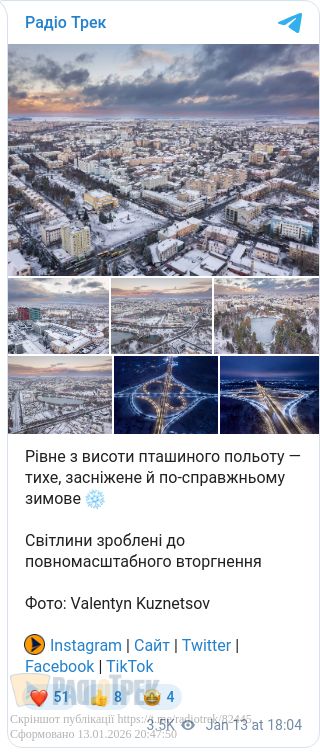 У мережі з’явилися світлини Рівного з висоти пташиного польоту. На знімках місто виглядає тихим, засніженим і по-справжньому зимовим.