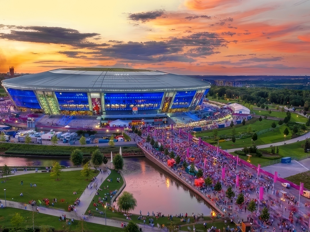 Звичайно, раніше Донецьк не можна було уявити без футболу й улюбленої всіма жителями команди Вищої ліги «Шахтар». У 2009 році тут проводилися матчі юнацького чемпіонату Європи з футболу, а в 2012-му Донецьк приймав кілька матчів групового турніру, чвертьфінал і півфінал Євро. На новому, сучасному стадіоні «Донбас-Арена» в чемпіонаті Європи грали збірні Франції, Англії, Іспанії, Португалії та України. А на півфінал між Іспанією та Португалією в Донецьк прилітали король Іспанії Хуан Карлос і президент Португалії Анібал Каваку Сілва. На «Донбас-Арені», розрахованій майже на 53 тисячі місць, під час чемпіонату було стільки глядачів, що ніде було яблуку впасти, і серед них – не один десяток VIP-персон.