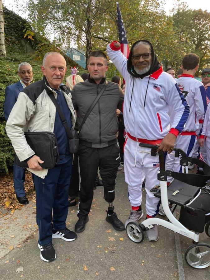Головний тренер збірної команди Олександр Сліпченко, чемпіон світу в адаптивному розділі єдиноборств майор Владислав Горнодь, срібний призер Уилліс Мортон (США)