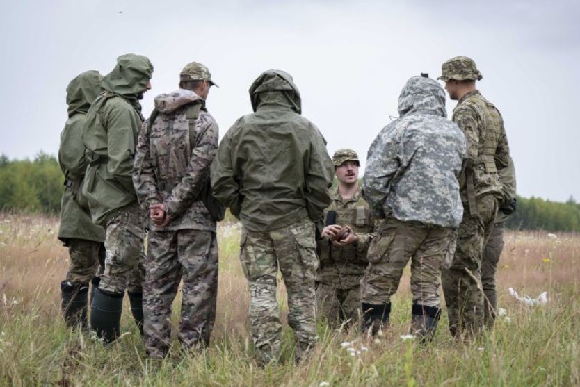Канадський військовий інженер навчає українських військовослужбовців поводження з протитанковими мінами. Фото: CAF