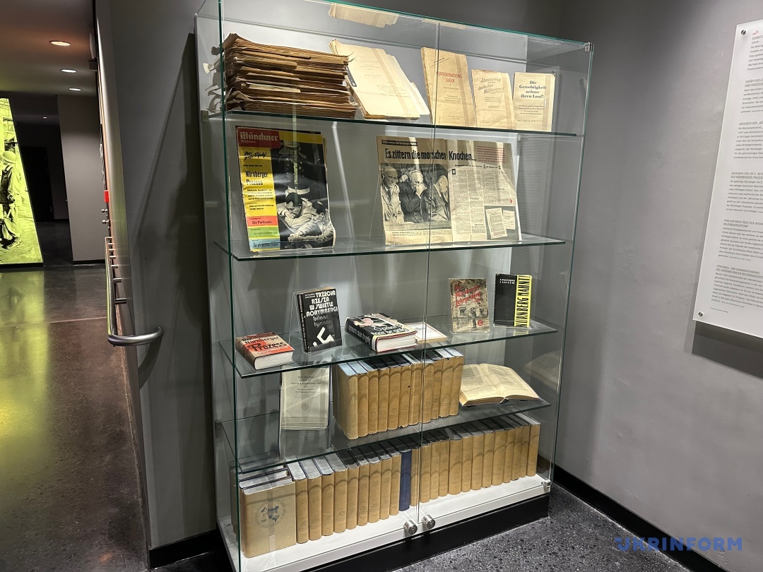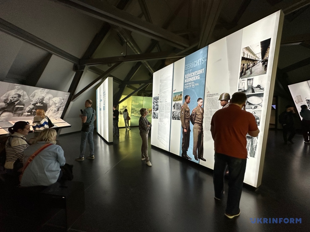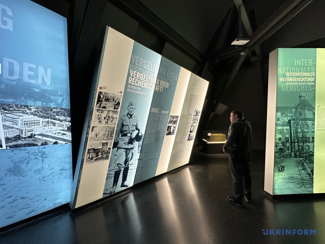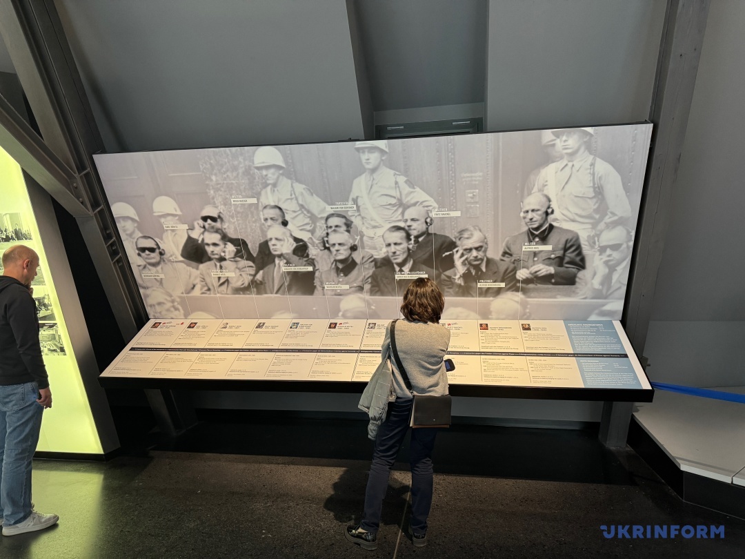 Експозиція музею, не дуже велика, та 20-хвилинне відео, яке показують у знаменитій Залі суду №600, де власне й проходили засідання, – це архівні матеріали, які стосуються не лише того трибуналу, а й наступних процесів після Другої світової. Але не тільки: тут представлена інформація і про вплив Нюрнберзького трибуналу до сьогодні, зокрема, про відносно недавні суди над тими, хто скоїли злочини проти людяності по всьому світу. Важливо, що у відео вже є згадка про російську війну в Україні. «Кожна атака, кожне бомбардування є злочином агресії. Володимир Путін має бути притягнутий до відповідальності за звірства, скоєні російськими військами в Україні. Така поведінка потребує воєнного трибуналу на кшталт Нюрнберзького», ­– лунає у судовій залі. Поки що з велетенського екрана. Хочеться сподіватися, що одного дня в музеї з’явиться ще один повноцінний стенд.