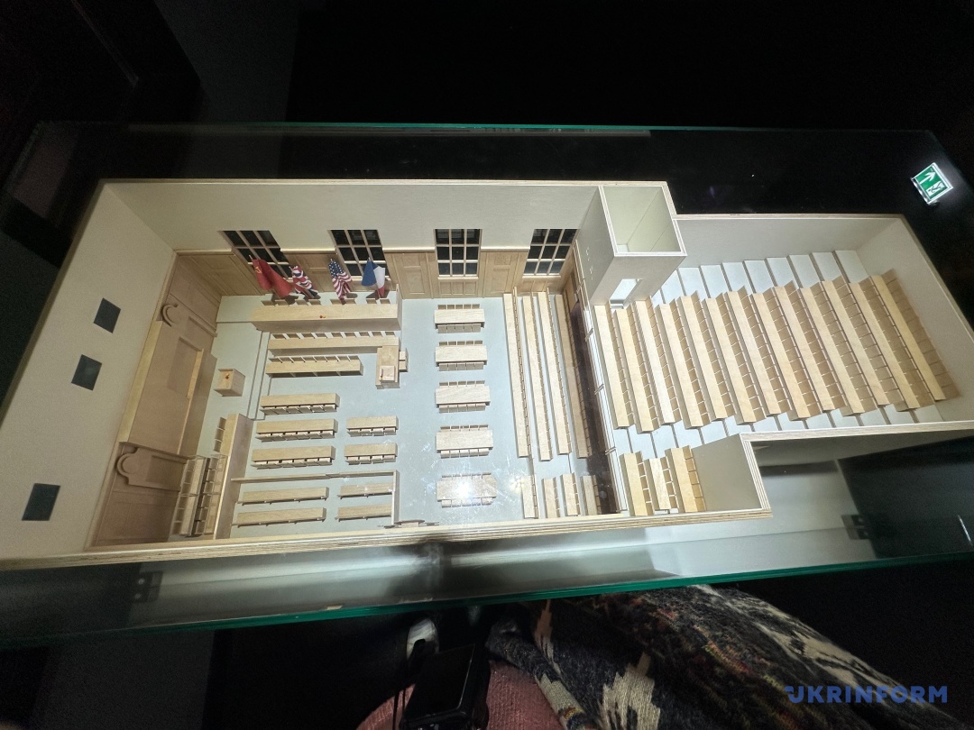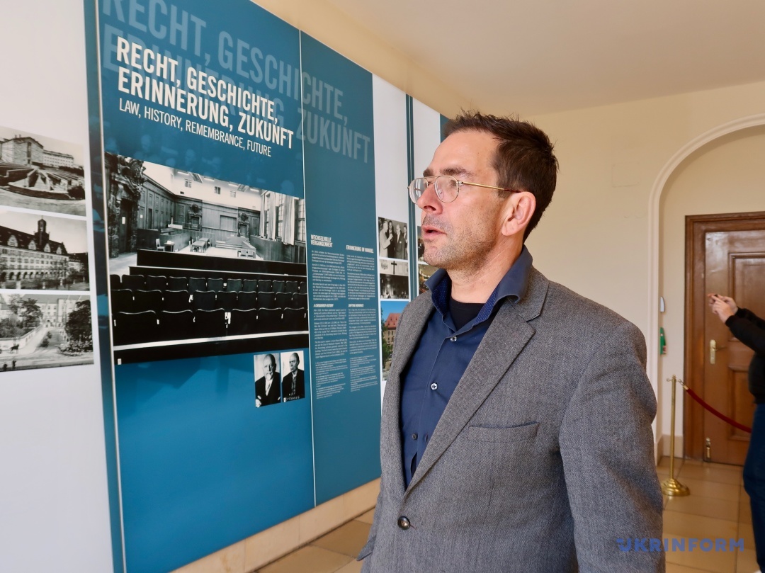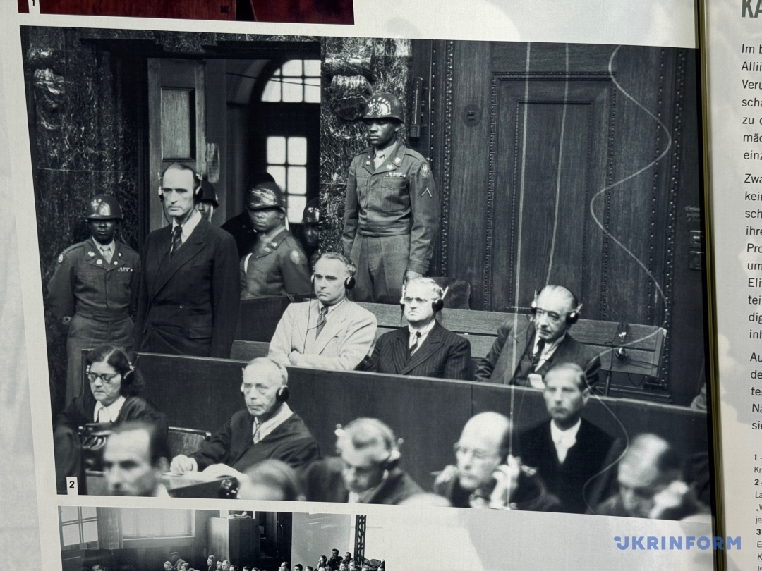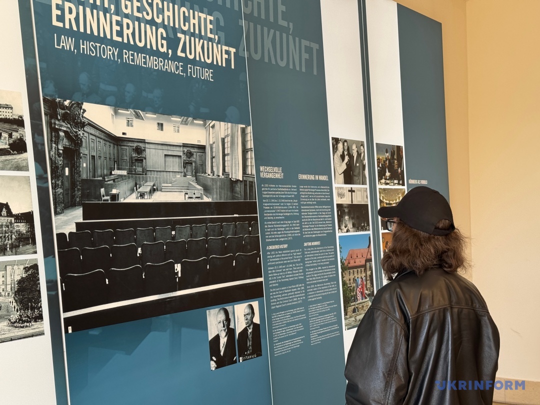 Експозиція музею, не дуже велика, та 20-хвилинне відео, яке показують у знаменитій Залі суду №600, де власне й проходили засідання, – це архівні матеріали, які стосуються не лише того трибуналу, а й наступних процесів після Другої світової. Але не тільки: тут представлена інформація і про вплив Нюрнберзького трибуналу до сьогодні, зокрема, про відносно недавні суди над тими, хто скоїли злочини проти людяності по всьому світу. Важливо, що у відео вже є згадка про російську війну в Україні. «Кожна атака, кожне бомбардування є злочином агресії. Володимир Путін має бути притягнутий до відповідальності за звірства, скоєні російськими військами в Україні. Така поведінка потребує воєнного трибуналу на кшталт Нюрнберзького», ­– лунає у судовій залі. Поки що з велетенського екрана. Хочеться сподіватися, що одного дня в музеї з’явиться ще один повноцінний стенд.