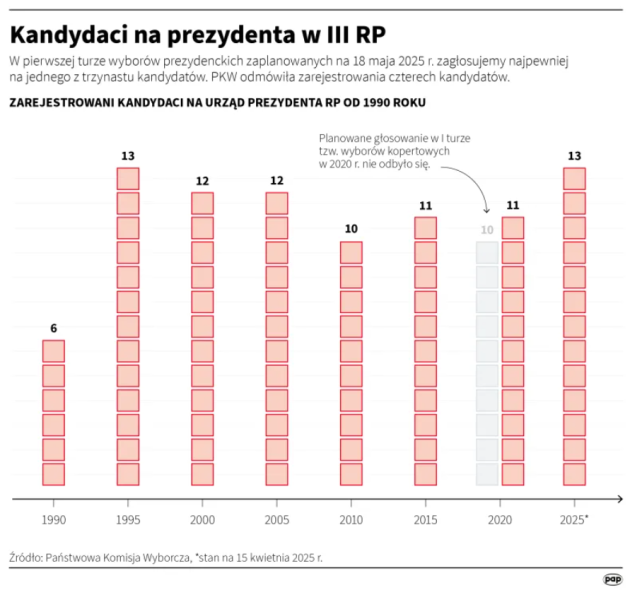 Перший тур президентських виборів відбудеться у Польщі 18 травня, ймовірний другий тур – 1 червня. За соцопитуваннями, станом на сьогодні трійка лідерів виглядає наступним чином: Тшасковський, Навроцький, Ментцен. При цьому не виключено, що Ментцен може обійти Навроцького за результатами першого туру виборів.