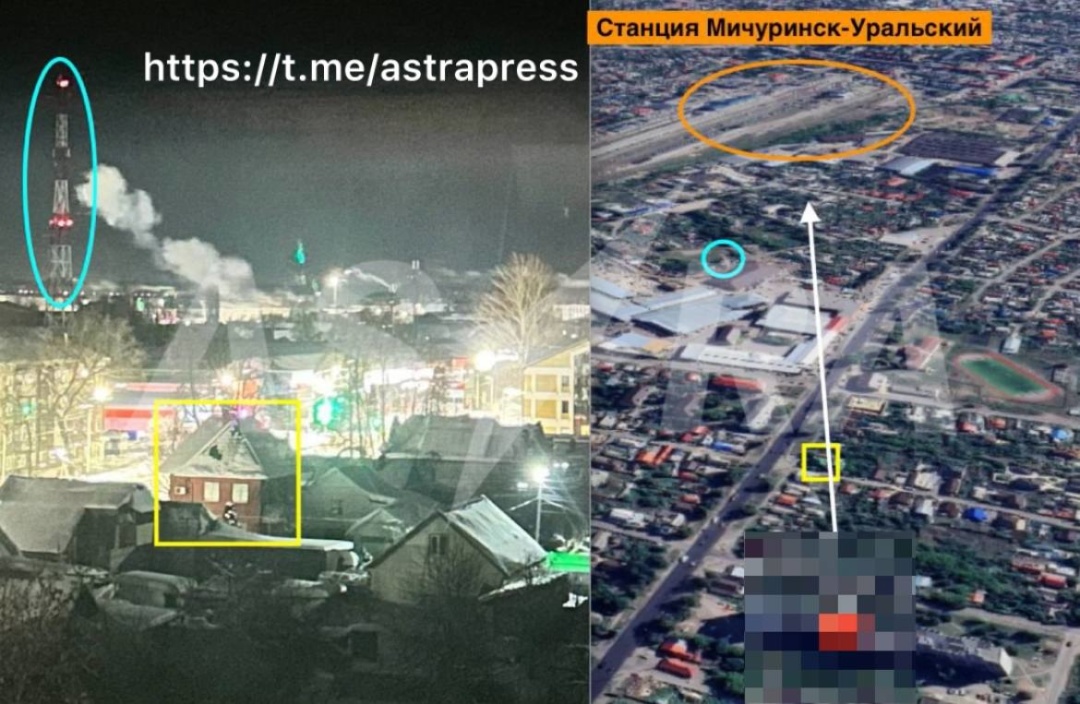ASTRA верифікувала фото очевидців, на яких видно дим у районі залізничної станції "Мічуринськ-Уральський". Це головний вокзал міста Мічуринськ.