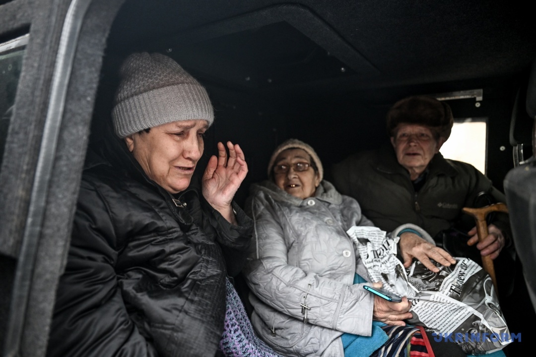 Журналісти Укрінформу разом із запорізькими поліцейськими та старшим капеланом по Запорізькій області виїхали в Юрківку, аби вивезти 11 літніх людей, серед яких двоє – маломобільні.