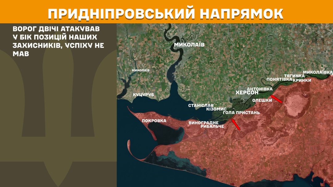 На Придніпровському напрямку росіяни двічі безуспішно атакували.