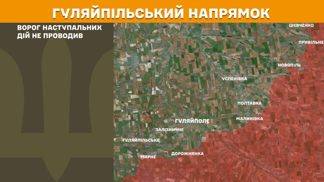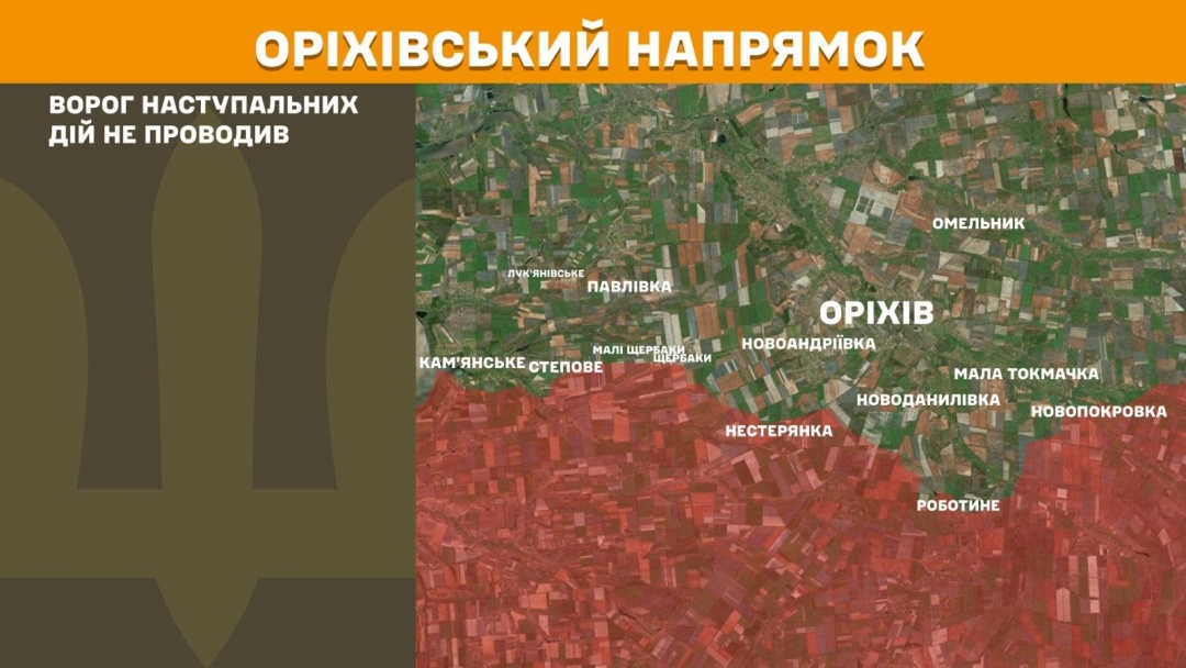 На Гуляйпільському та Оріхівському напрямках ворог наступальних дій не проводив.