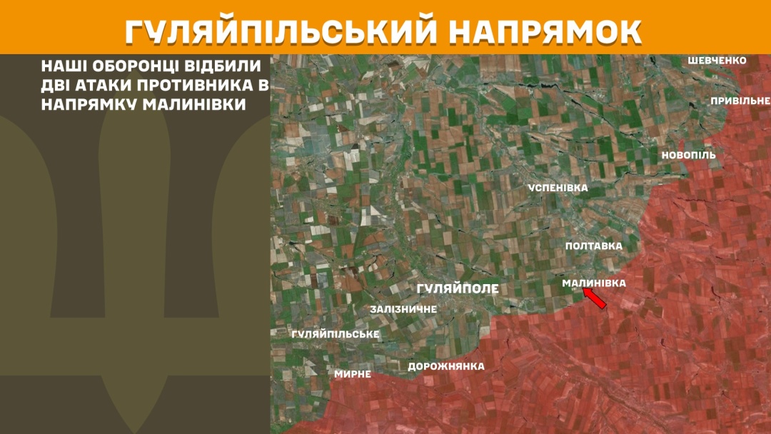 На Гуляйпільському напрямку українські оборонці відбили дві атаки ворога в напрямку Малинівки.