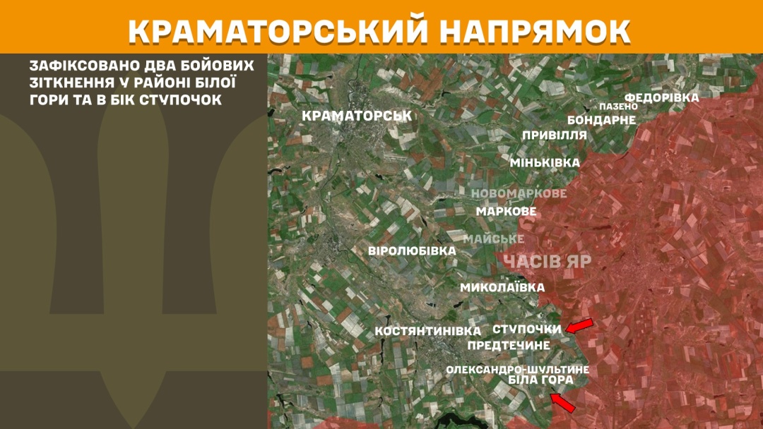 На Краматорському напрямку зафіксовано два бойових зіткнення у районі Білої Гори та в бік Ступочок.