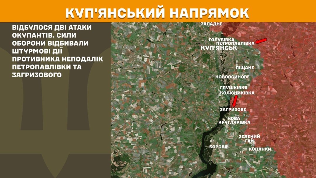На Куп’янському напрямку за добу відбулося дві атаки окупантів. Сили оборони відбивали штурмові дії противника неподалік Петропавлівки та Загризового.