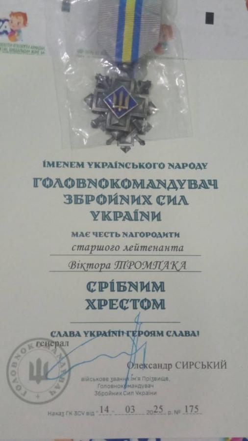 Сам Віктор вже у вересні 2022 р. отримав звання молодшого сержанта і став командиром відділення. У жовтні атестувався на офіцера, у січні 2023-го отримав первинне офіцерське звання – молодший лейтенант – і став командиром взводу. У травні 2023 р. потрапив у Харківську область. Був тоді в піхоті, п’ять з половиною місяців воював на Куп’янському напрямку. Мав кілька поранень і контузій, відтоді майже не чує на одне вухо. У жовтні їх вивели на відновлення боєздатності на Сумщину, і там Тромпак уже став командиром контрдиверсійного резерву батальйону.